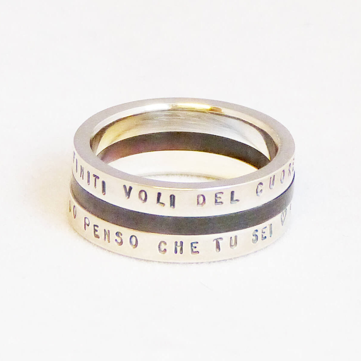 COMBI-RING, 2x zilver en 1xzirkonium, 2 regels tekst