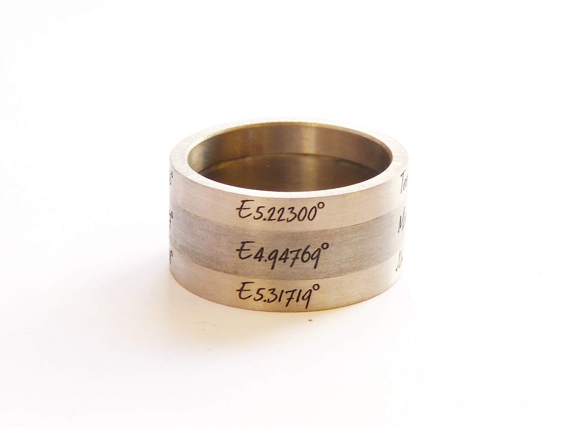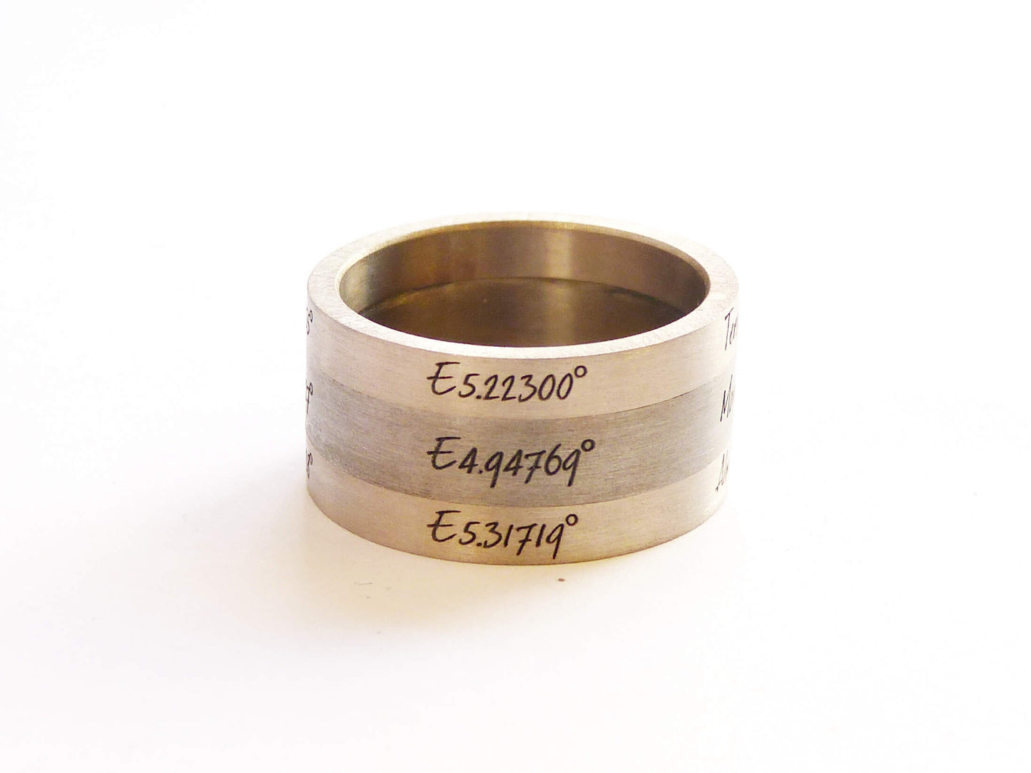 COMBI-RING by laser, 2x zilver en 1x zirkonium, 2 regels tekst