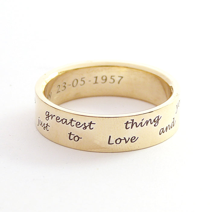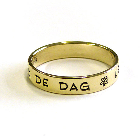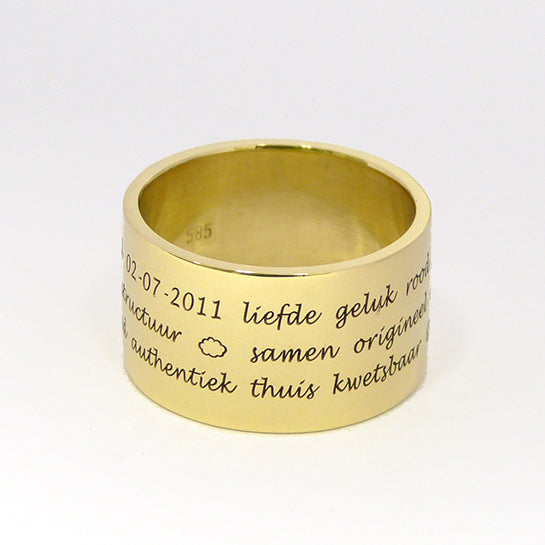 Tekst-Ring by laser - 1,2 of 3 regels tekst - Goud