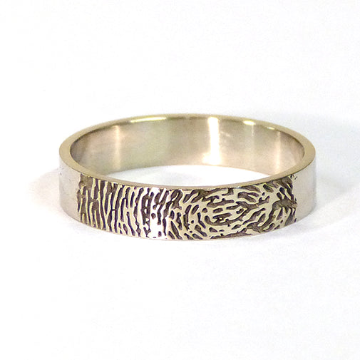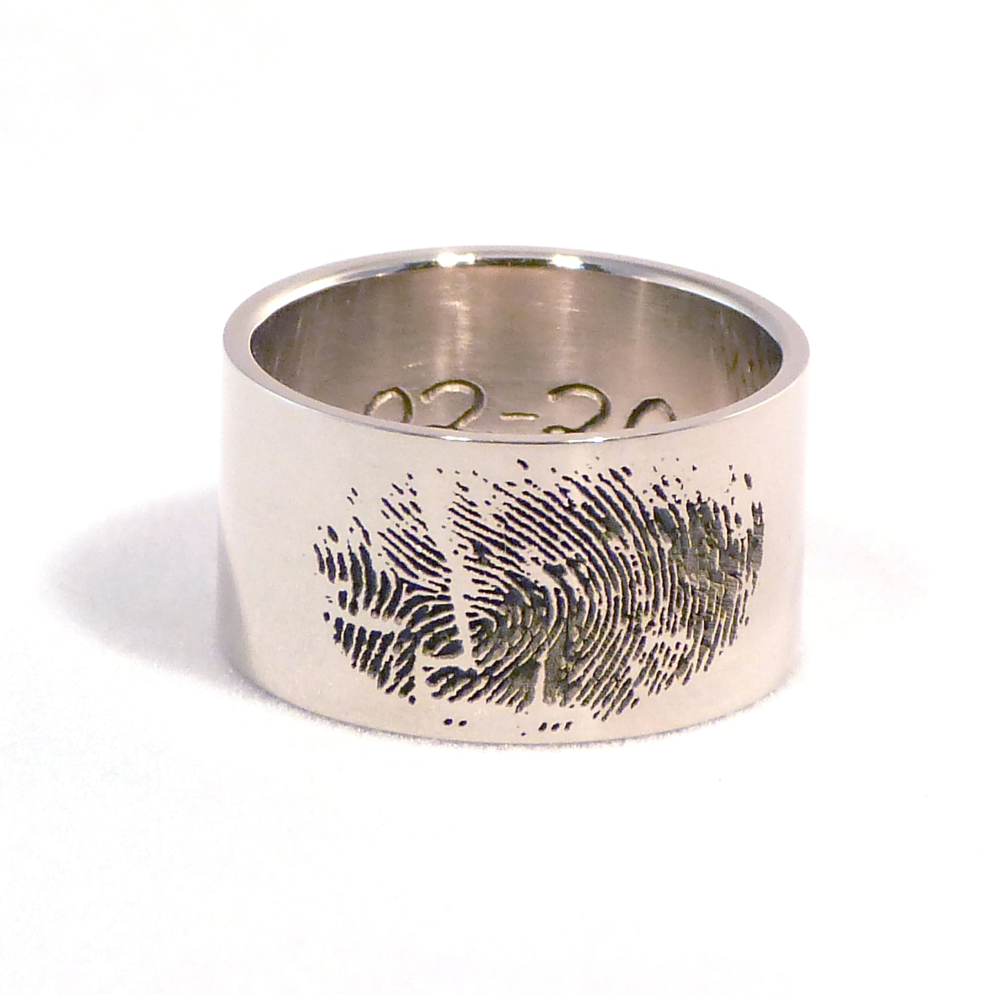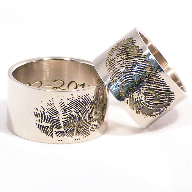 Vingerafdrukken laat je overal achter, maar hij blijft voor eeuwig achter op deze ringen en blijven. Een vingerafdruk is een weergave van het papillairlijnenpatroon op de huid van de vingers van een persoon. Dit patroon is bij iedereen uniek en hoe bijzonder is dat op dat unieke stukje van je geliefde altijd bij je te dragen. Hoe mooi is het dan als jullie elkaar het ja-woord geven met elkaars vingerafdrukken?
